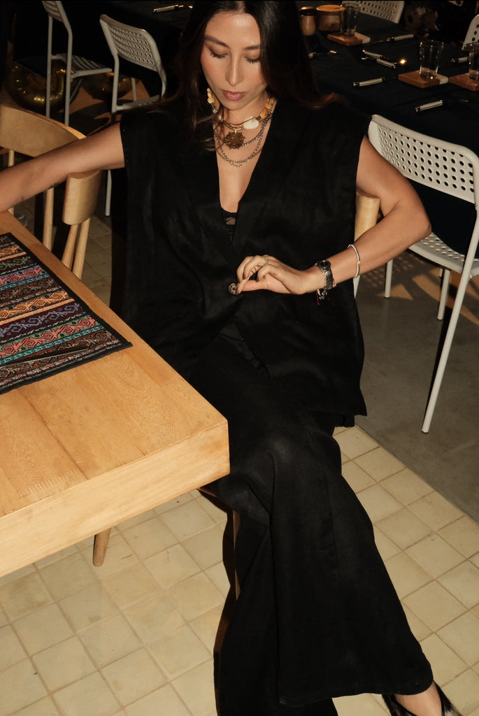 Every detail is considered: from the V-cut of the back waistband, to the tone-on-tone embroidery of our ID. logo on the back pocket, and the two pockets on the front. Combine it with a t-shirt, a blouse, or the matching Blazer Vest.
